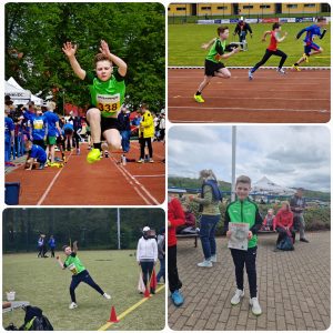 Veröffentlicht am 4. Mai 2024 von M. PrüferFrühjahrssportfest Ohrdruf 04.05.2024 Dreikampf Altersklasse Schlagball 50m Weit Gesamt Kiesewetter, Arno M11 26,50m 8,60s 3,56m Platz 8 Arno bei den Disziplinen und der Siegerehrung
