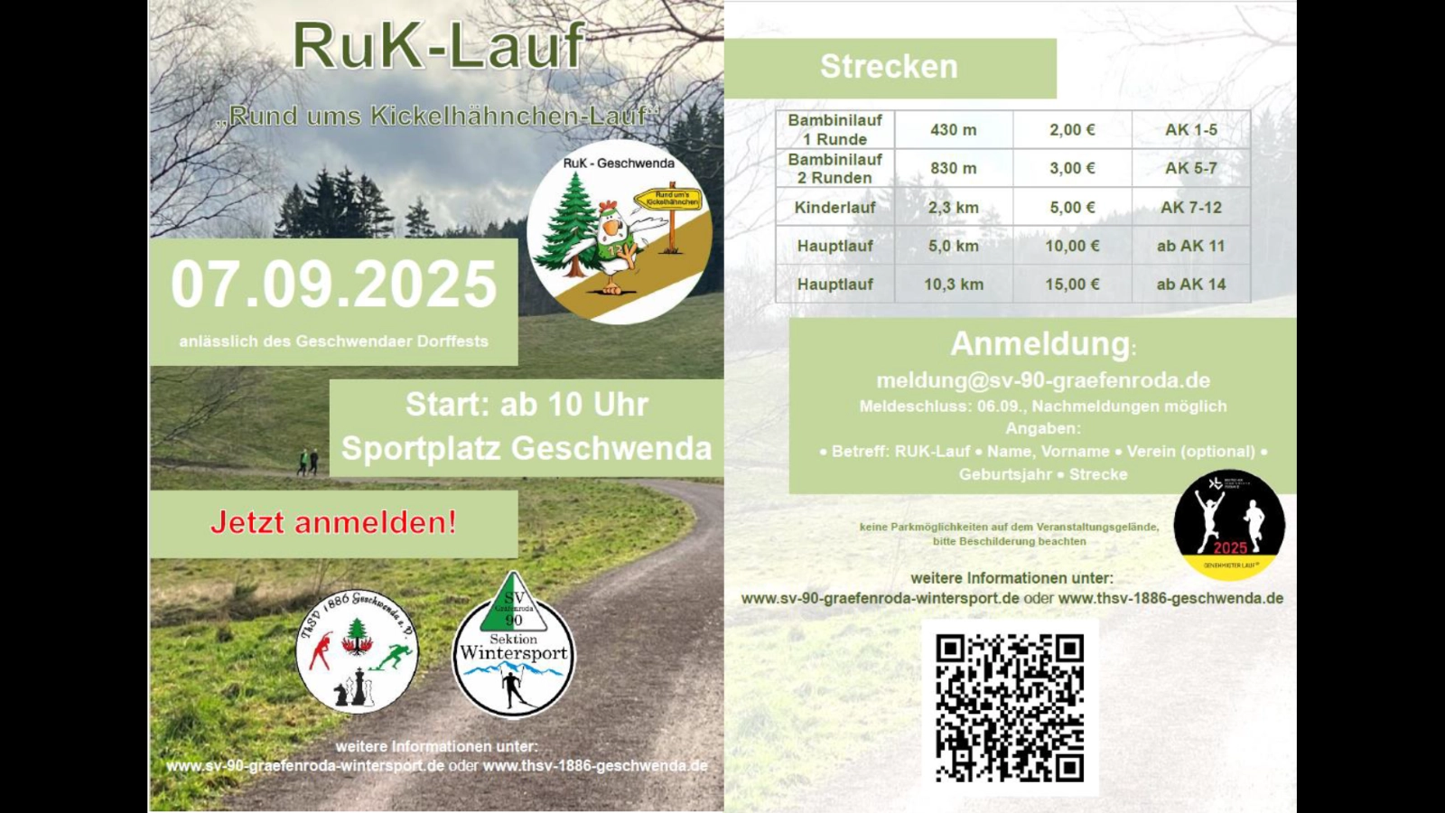 Ein Erfolg wie der RuK-Lauf ist nur durch starke Partnerschaften möglich. Der ThSV 1886 Geschwenda arbeitet hierbei eng mit dem SV 90 Gräfenroda zusammen, der insbesondere die professionelle Zeitmessung unterstützt.